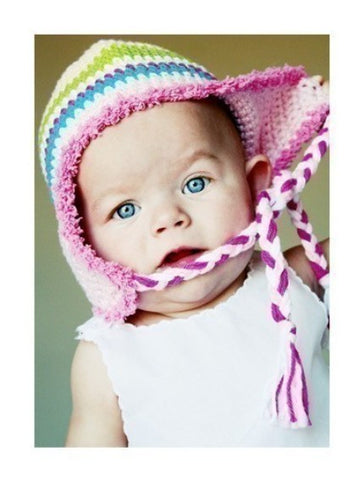 Child size 5- Tween Cotton Earflap Hat- Pink with bright stripes