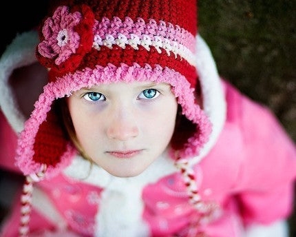 Cotton Furry Earflap Hat- Blushing Cherries with Furry trim-valentine